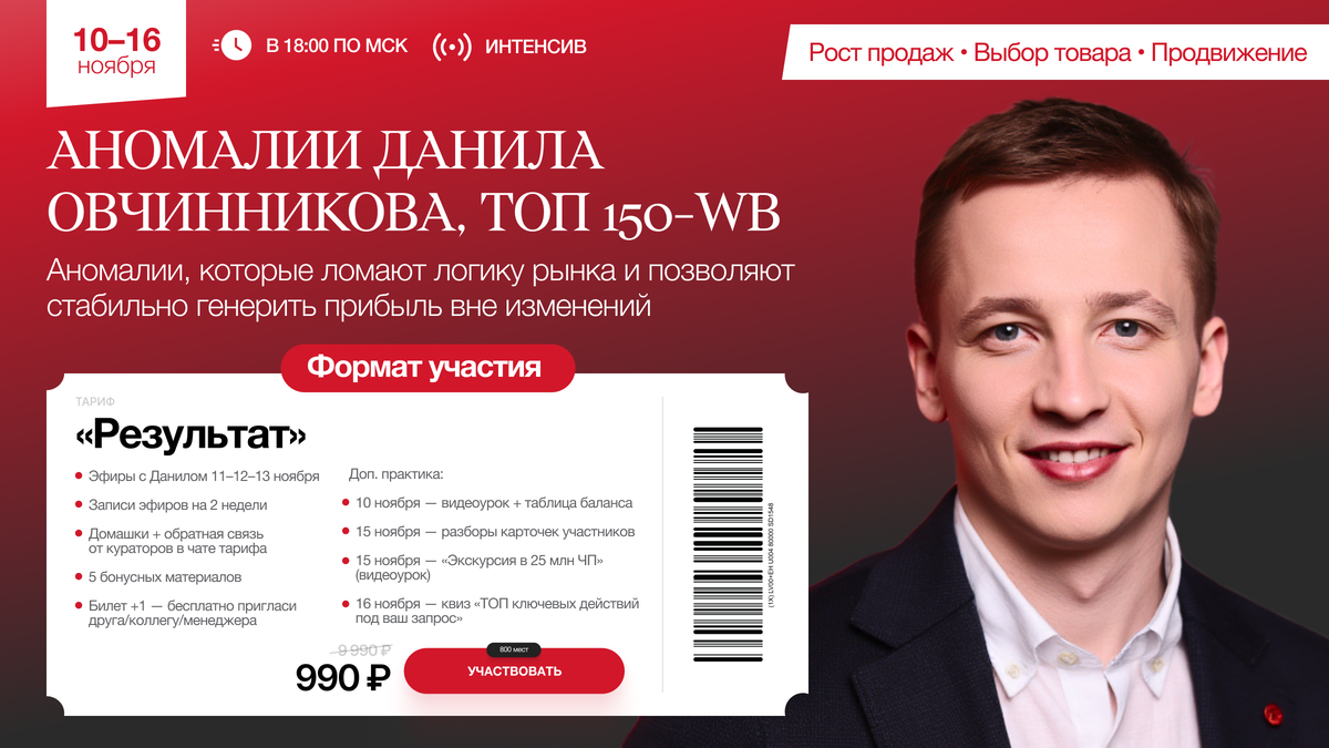 ИНТЕНСИВ "Аномалии Данила Овчинникова, ТОП 150-WB"